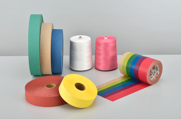 その他、包装の副資材としてミシン糸、クレープ紙、ヒートシールテープ、クラフトテープ、クラフト紙(平版)等、豊富に取り揃えており全国発送可能です。